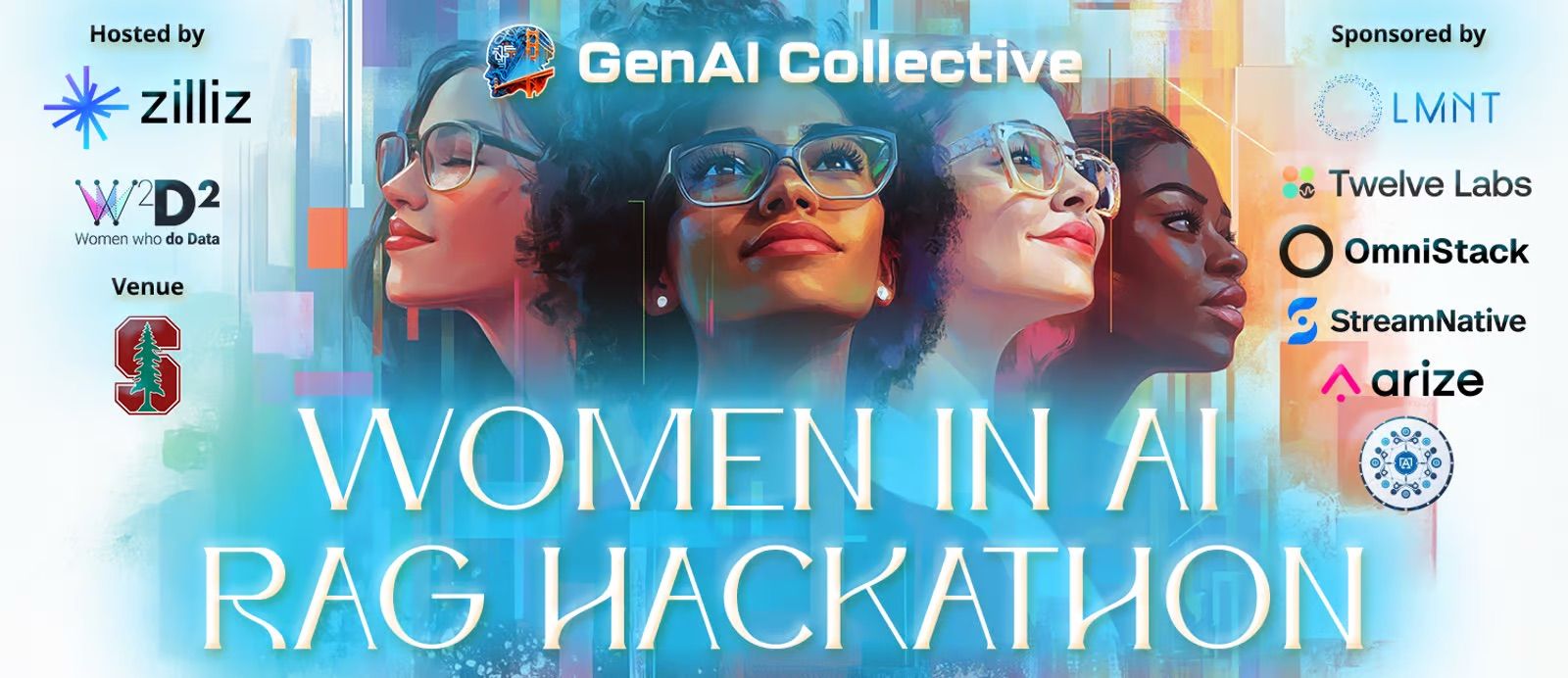 We are so excited for the upcoming inaugural Women in AI RAG Hackathon, a collaborative event that aims to celebrate and empower women in the field of artificial intelligence. Organized in partnership with Zilliz, GenAI Collective, and Women Who Do Data (W2D2), this event takes place on Saturday, January 25, 2025, at Stanford University, Palo Alto, CA.