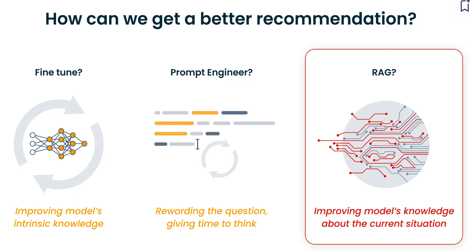 Two techniques are available to improve your recommendation model: fine-tuning and prompt engineering.