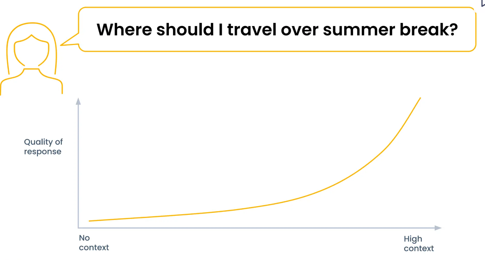 Context can enhance AI personalization in numerous cases like tailored shopping experiences, building chatbots, providing personal finance advice, or recommending new movies. Higher levels of personalization improve the product experience, but the difficulty of building increases parallelly.