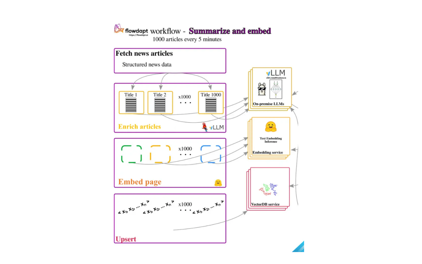 Building the embedded page: The enriched articles are converted into vector embeddings using a text embedding model and stored in a vector database like Milvus. In the future, the information can be queried from the vector database. Choosing the text embedding model and vector database is crucial.